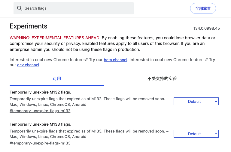 跳转到 chrome://flags/ 能看到当前设备所支持的指令。