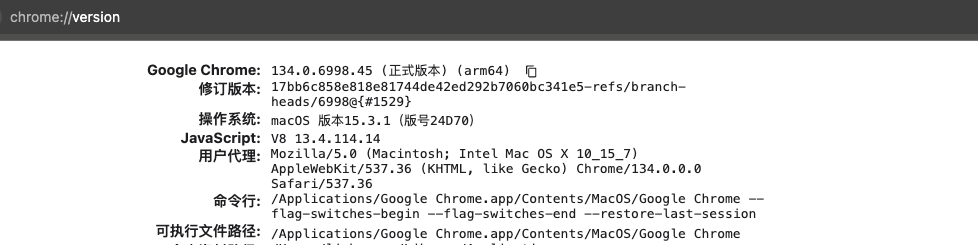 打开 chrome://version/ 也能看到对应启动的信息。