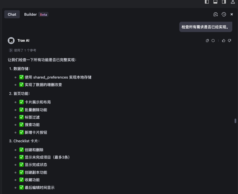 想起了之前用 Flutter 开发的独立开发者三件套之一的 Checklist,于是想看看 Trae 深浅如何。